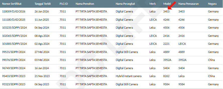 インドネシア認証機関にライカのデジタルカメラ 型番「3403」が登録されました。ネットで「3403」を検索してみると具体的な情報が出て来ないので未発表カメラの可能性があります。