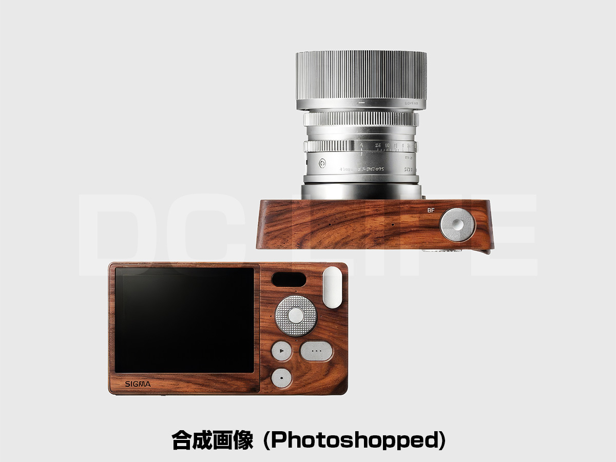 シグマ「BF」は、アルミニウムインゴットから削り出した唯一無二なカメラです。「BF画像をウッドボディに合成(photoshopped)してみたら、これはこれで良い感じに。