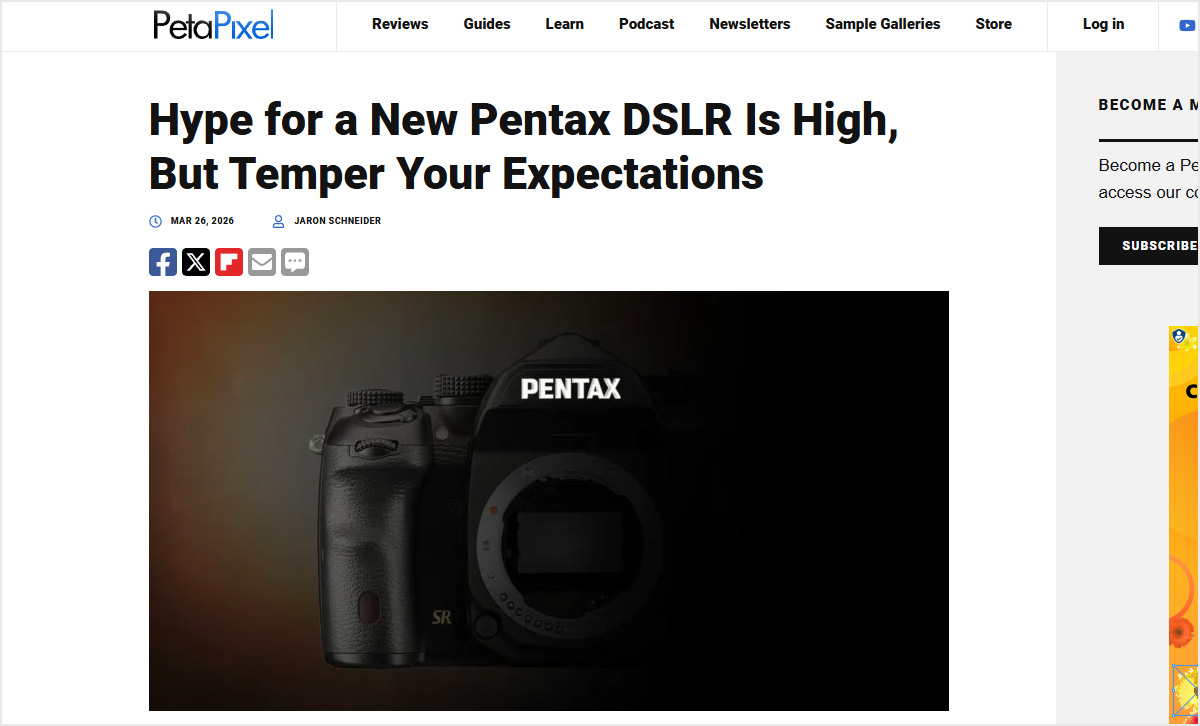 PENTAXの新型デジタル一眼レフを巡る噂が、にわかに活気づいています。ファン待望の「真の新型機」への期待が高まる中、海外大手メディアのPetaPixelが「過度な期待は禁物」と冷静な、あるいは冷徹とも言える忠告記事を掲載しました。