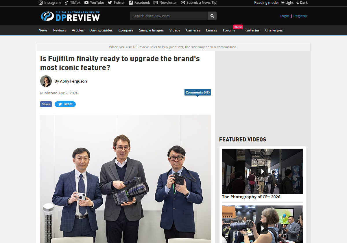 CP+2026で行われた、dpreviewによる富士フイルム開発陣への独占インタビュー。そこでは、世界中を驚かせたハーフサイズ機「X-half」の真の狙いから、レンズ一体型中判「GFX100RF」の今後のシリーズ化、そして次世代の「色」の行方まで、我々ユーザーが最も知りたかったトピックが赤裸々に語られました。