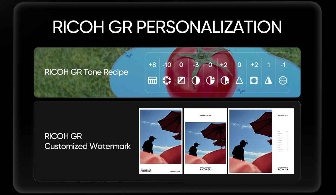 " RICOH GR パーソナライゼーション " を用意しカスタマイズ可能な模様。トーンレシピでより自分好みのGRカラーに仕上げる事が出来そうな印象。ウォーターマークもカスタマイズ可能となっています。